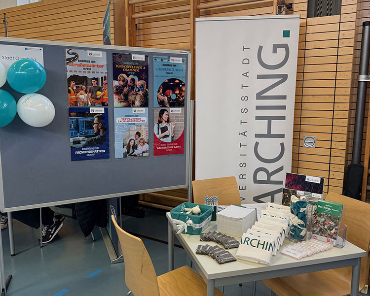 12.04.2026 | Schule Max Mannheimer Lebendige Berufsorientierung am Bewerbungsforum Am Dienstag, den 24. März trafen sich wieder viele Firmen, Betriebe und Arbeitsmarktakteure in der Turnhalle der Max Mannheimer Mittelschule, um ihr Firmenprofil und ihre Ausbildungsberufe vorzustellen. Dies ist immer die Gelegenheit für alle Schüler und Schülerinnen ab der 7. Klasse sich über das Profil der Betriebe zu informieren und die Ausbilder persönlich kennen zu lernen. Und so traf man an diesem Vormittag aufgeregte und schick gekleidete Jugendliche, die mit ihren Bewerbungsunterlagen persönliche Gespräche mit unterschiedlichen Betrieben führen konnten. Eröffnet wurde das Bewerbungsforum vom Bürgermeister der Stadt Garching Herrn Dr. Gruchmann und alle ausstellenden Gäste wurden kulinarisch versorgt und verwöhnt von den Schülern und Schülerinnen des Faches Ernährung und Soziales. Hier konnte man schon sehen und schmecken was die Schülerinnen bereits gelernt hatten! Im Anschluss an diese intensive Bewerbungsmesse fand ein ehrliches Feedbackgespräch mit den Firmen und den Klassenlehrern der beteiligten Klassen statt, um die Erfahrungen auch mit den Schülern und Schülerinnen aufarbeiten zu können. Am Ende des Bewerbungsforums waren sich alle einig, dass dies eine extrem zielführende Veranstaltung im Bereich der Berufsorientierung sowohl für die Schüler als auch für die Wirtschaftsunternehmen ist – die Schüler müssen sich nämlich mit ihren Bewerbungsunterlagen auf diese Veranstaltung vorbereiten, sich vorstellen und fiktive Bewerbungsgespräche führen. Ein großes Dankeschön an alle beteiligten Firmen und die Handwerkskammer, die so einen Tag möglich machen! Bewerbungsforum-2025-26 (2)Bewerbungsforum-2025-26 (3)Bewerbungsforum-2025-26 (4)Bewerbungsforum-2025-26 (5)Bewerbungsforum-2025-26 (6)Bewerbungsforum-2025-26 (7)Bewerbungsforum-2025-26 (8)Bewerbungsforum-2025-26 (9)Bewerbungsforum-2025-26 (10)Bewerbungsforum-2025-26 (11)Bewerbungsforum-2025-26 (12)Bewerbungsforum-2025-26 (13)Bewerbungsforum-2025-26 (14)Bewerbungsforum-2025-26 (15)Bewerbungsforum-2025-26 (16)Bewerbungsforum-2025-26 (17)Bewerbungsforum-2025-26 (18)Bewerbungsforum-2025-26 (19)Bewerbungsforum-2025-26 (20)Bewerbungsforum-2025-26 (21)Bewerbungsforum-2025-26 (22)Bewerbungsforum-2025-26 (23)Bewerbungsforum-2025-26 (24)Bewerbungsforum-2025-26 (1)